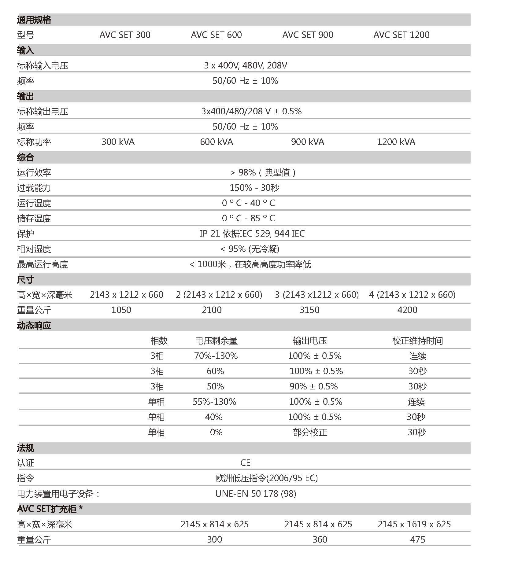 Zigor AVC DVR動態(tài)電壓調(diào)節(jié)器單機容量從30KVA至9000KVA,超出表格中的容量可根據(jù)客戶要求定制。下圖為40%補償機型規(guī)格,如需補償范圍20%/30%/50%/60%的機型規(guī)格,可來電詳細咨詢。